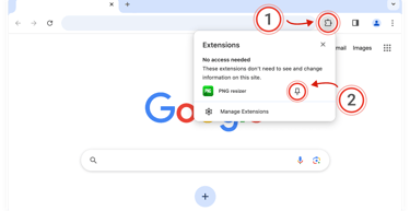 Click the puzzle piece (1) in the top right of your browser. Then, click the little pin (2) next to the extension:
